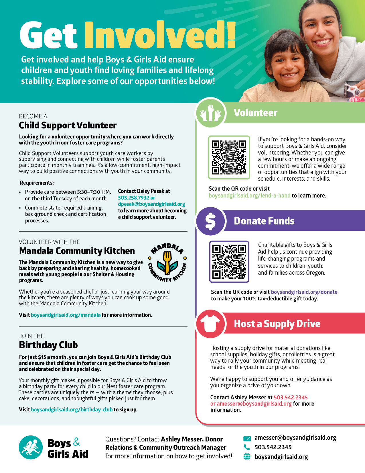 Boys & Girls Aid is a non-profit child welfare agency based in Portland, Oregon. Since 1885, they have been working to ensure children and youth find permanent, loving families and lifelong stability through adoption, foster care, permanency services, and shelter and housing services.